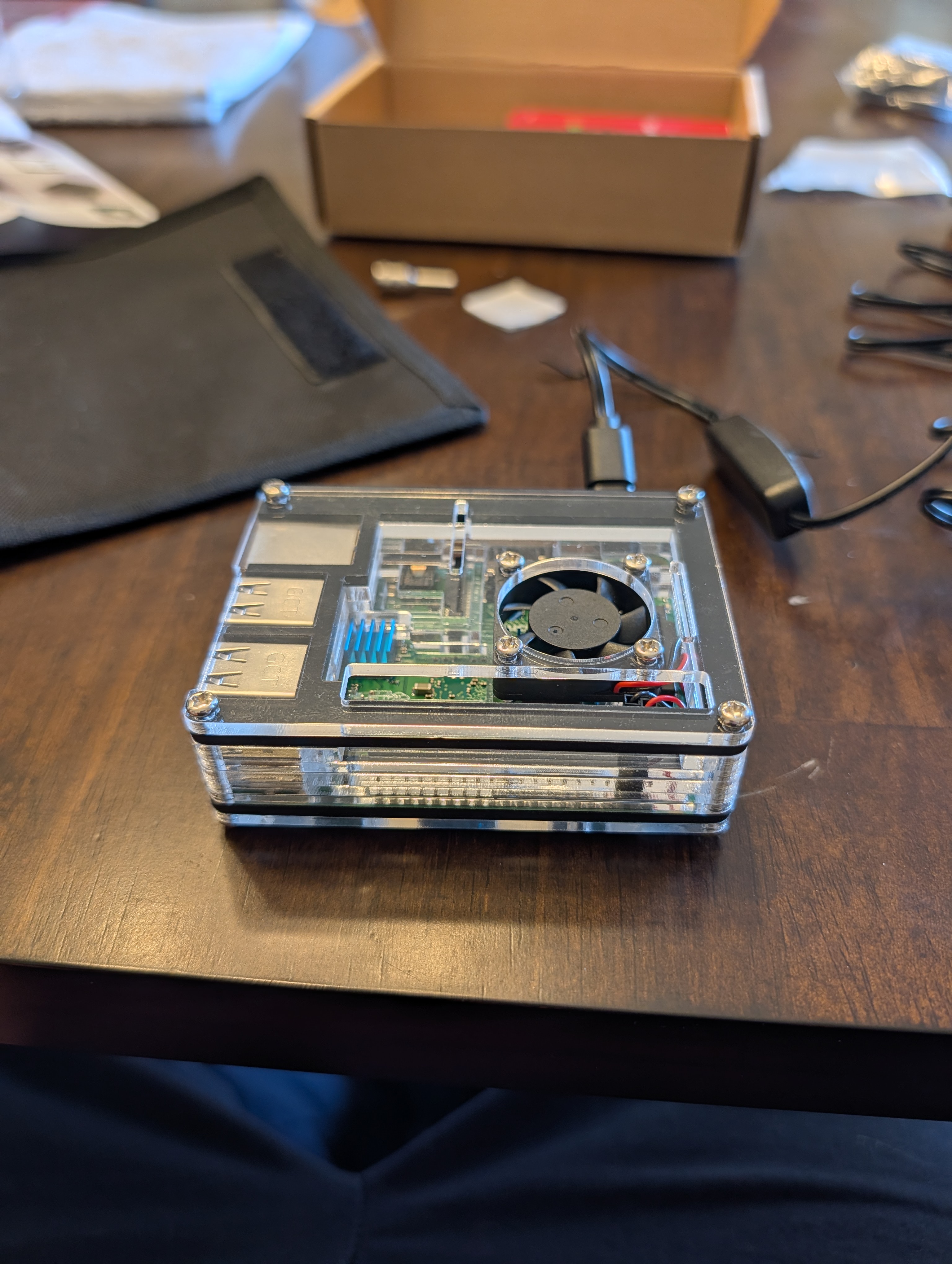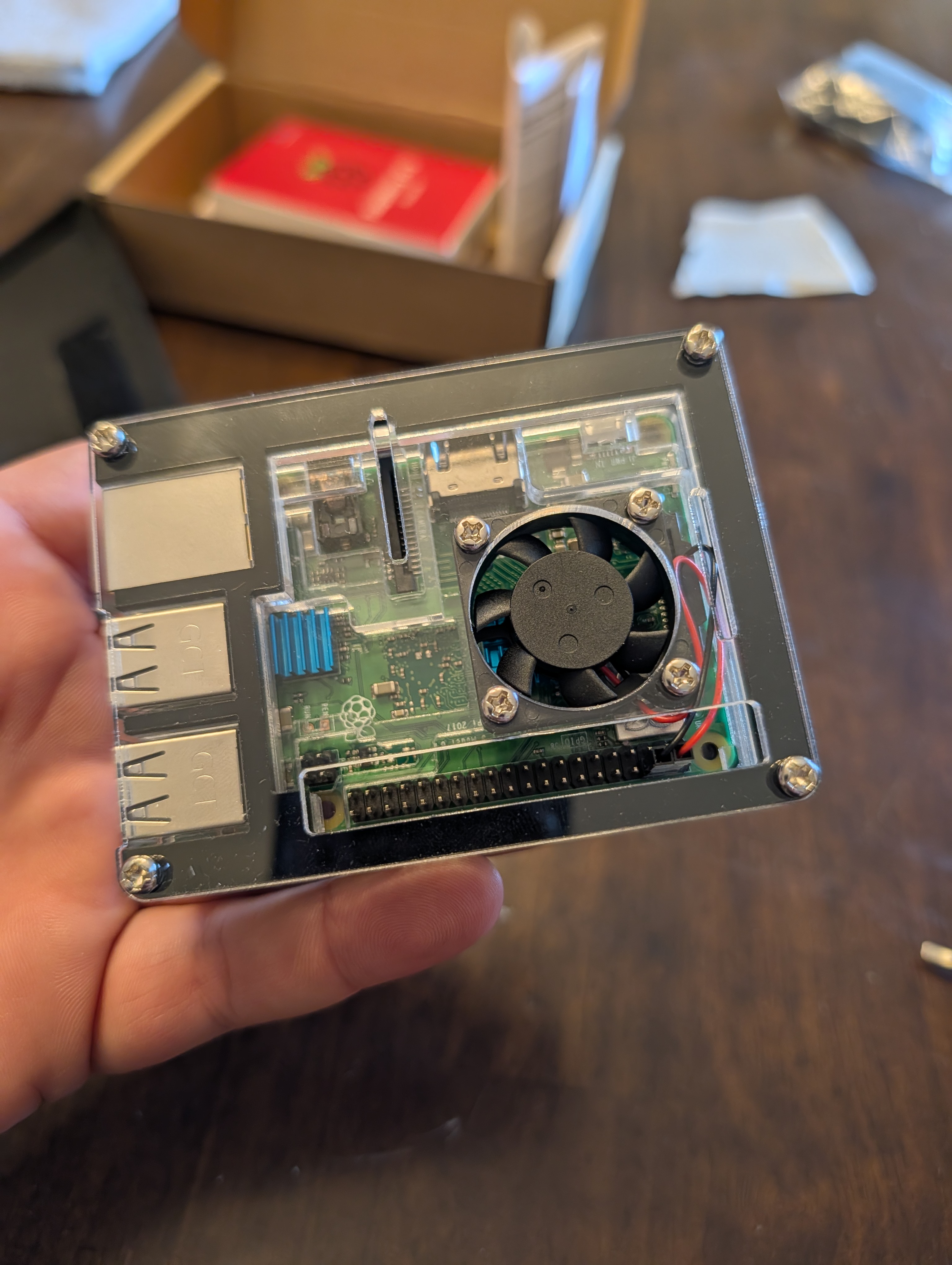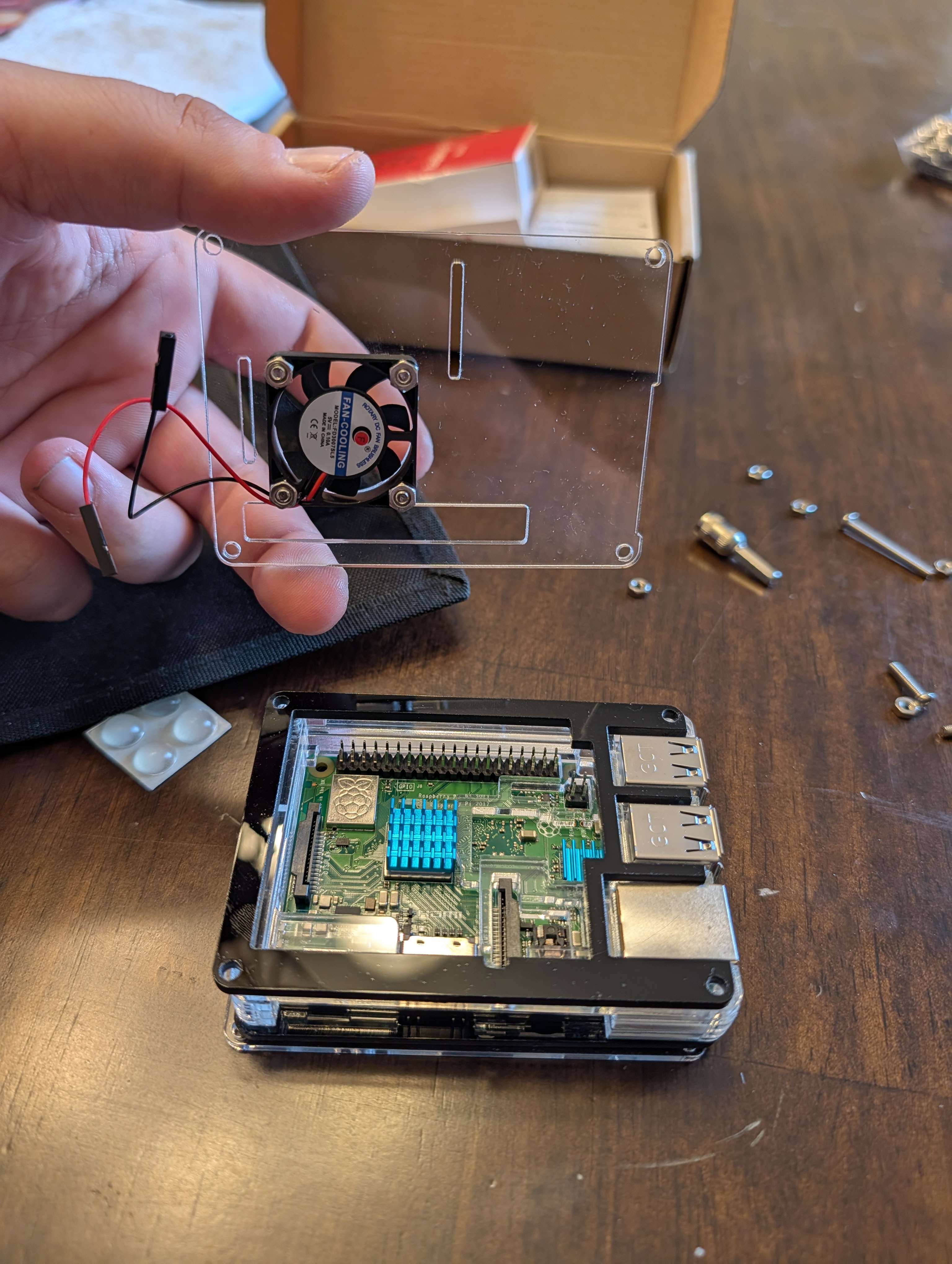 The cooling fan was wired directly to the Raspberry Pi’s 5 V rail:
