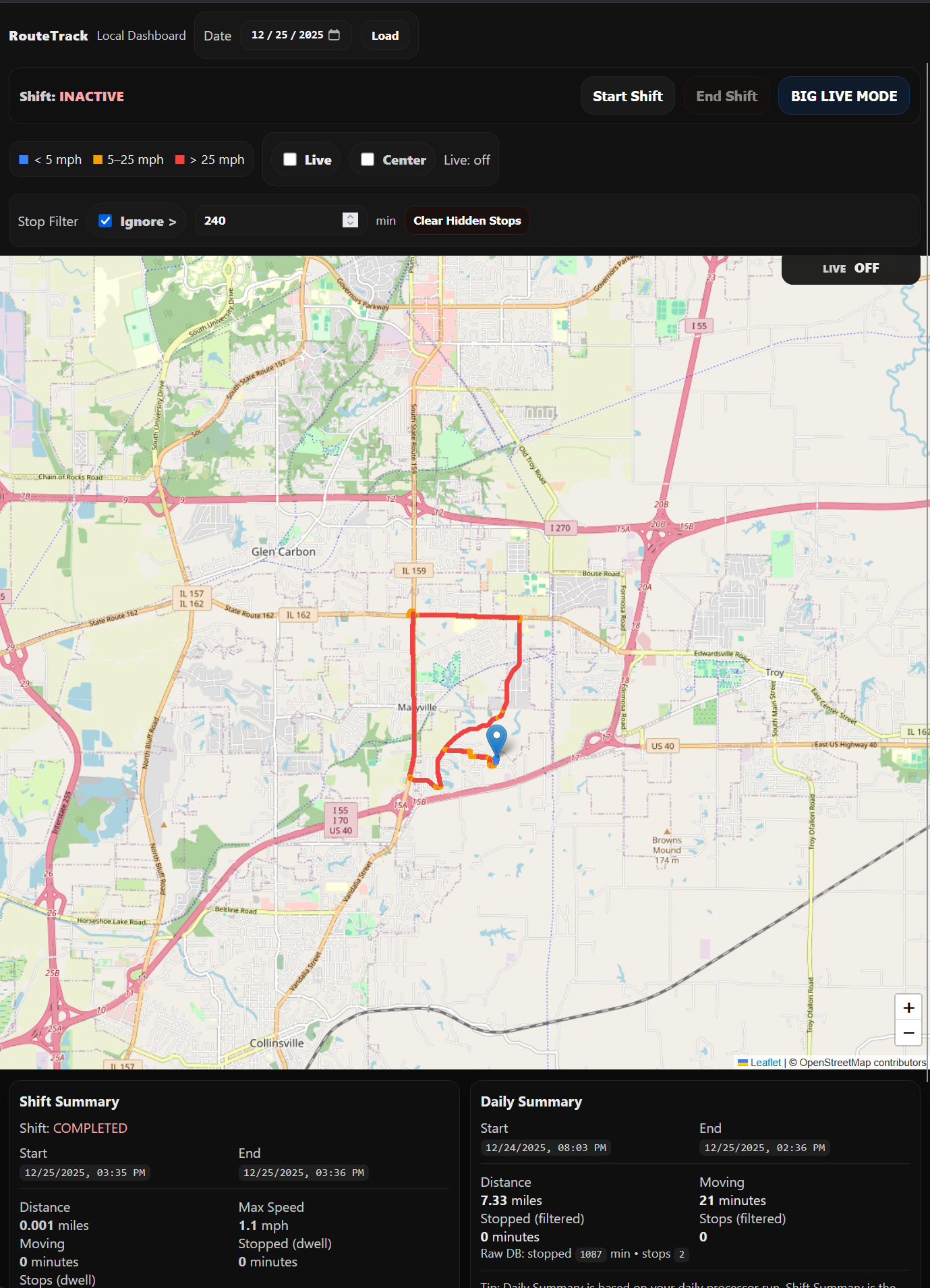 13 - RouteTrack Pi — Mobile Dashboard Overhaul + BIG LIVE MODE (Stop Point)